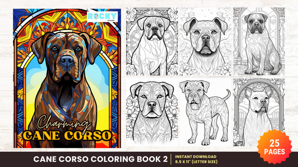 25 (printable) pages of adorable Cane Corso dogs. Every purchase helps Rocky rescue more dogs!
